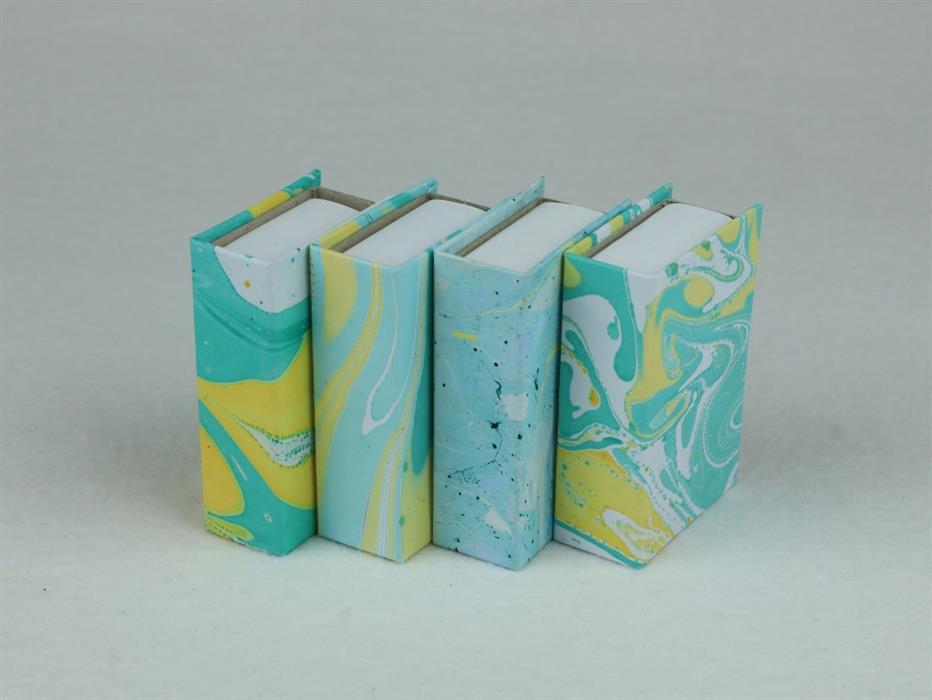 Jedes Stück ist ein Unikat, überzogen mit buntem Marmorpapier.